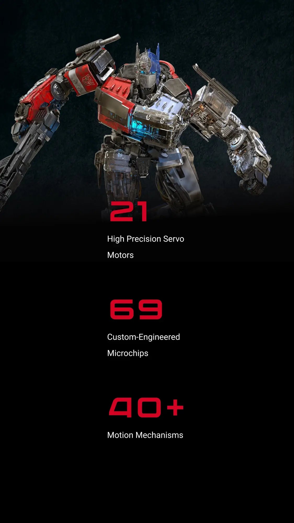 Robosen's Signature Series robots are designed to bring the cinematic experience one step closer to reality. The hyper-realistic cinematic rendering can now be visualized on every individual part of ROTB Optimus Prime, which were all painstakingly hand painted to bring the movie magic alive. A balance was achieved to infuse Robosen's robotics engineering to make the experience still dynamic and interactive, while preserving movie authenticity.