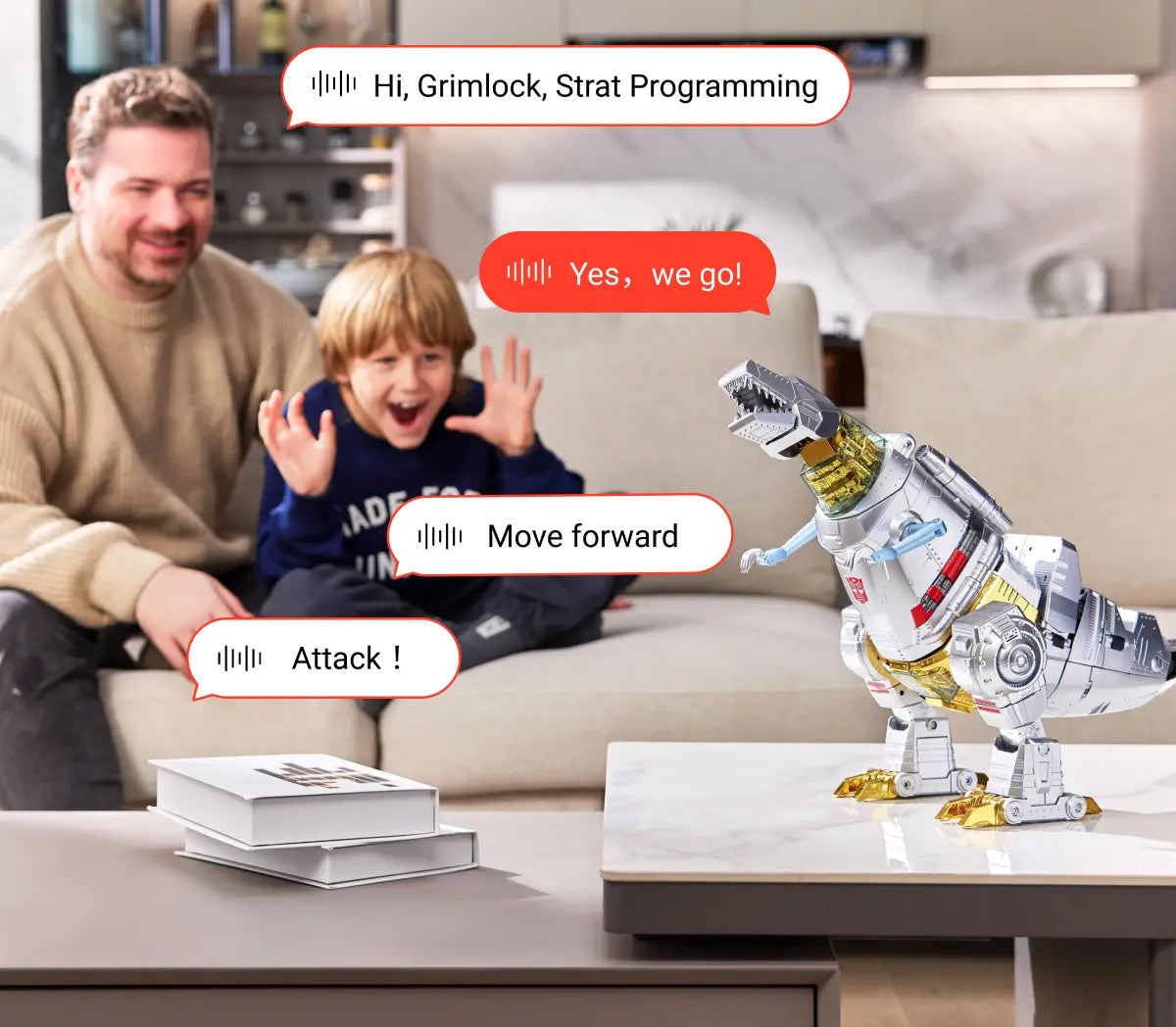 Grimlock has built-in original Transformers audio lines, recorded exclusively for Robosen by Gregg Berger, original voice of G1 Grimlock.