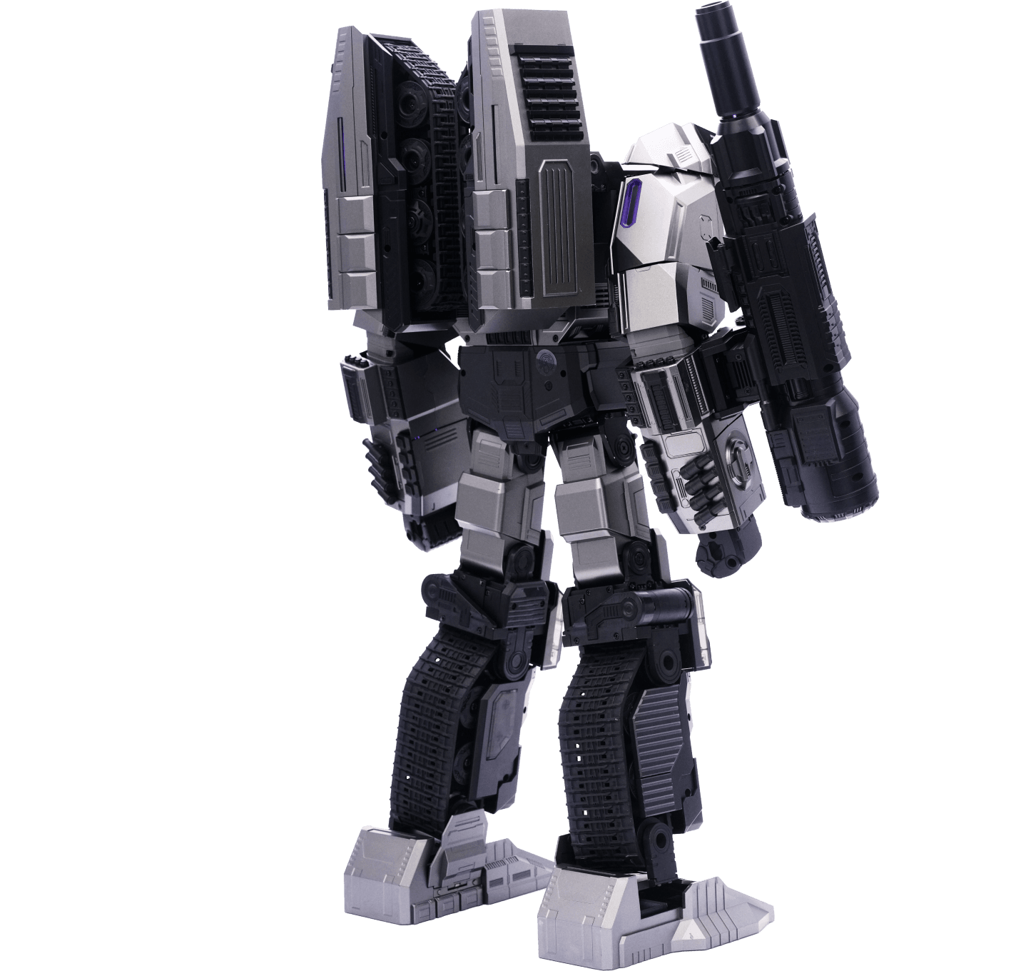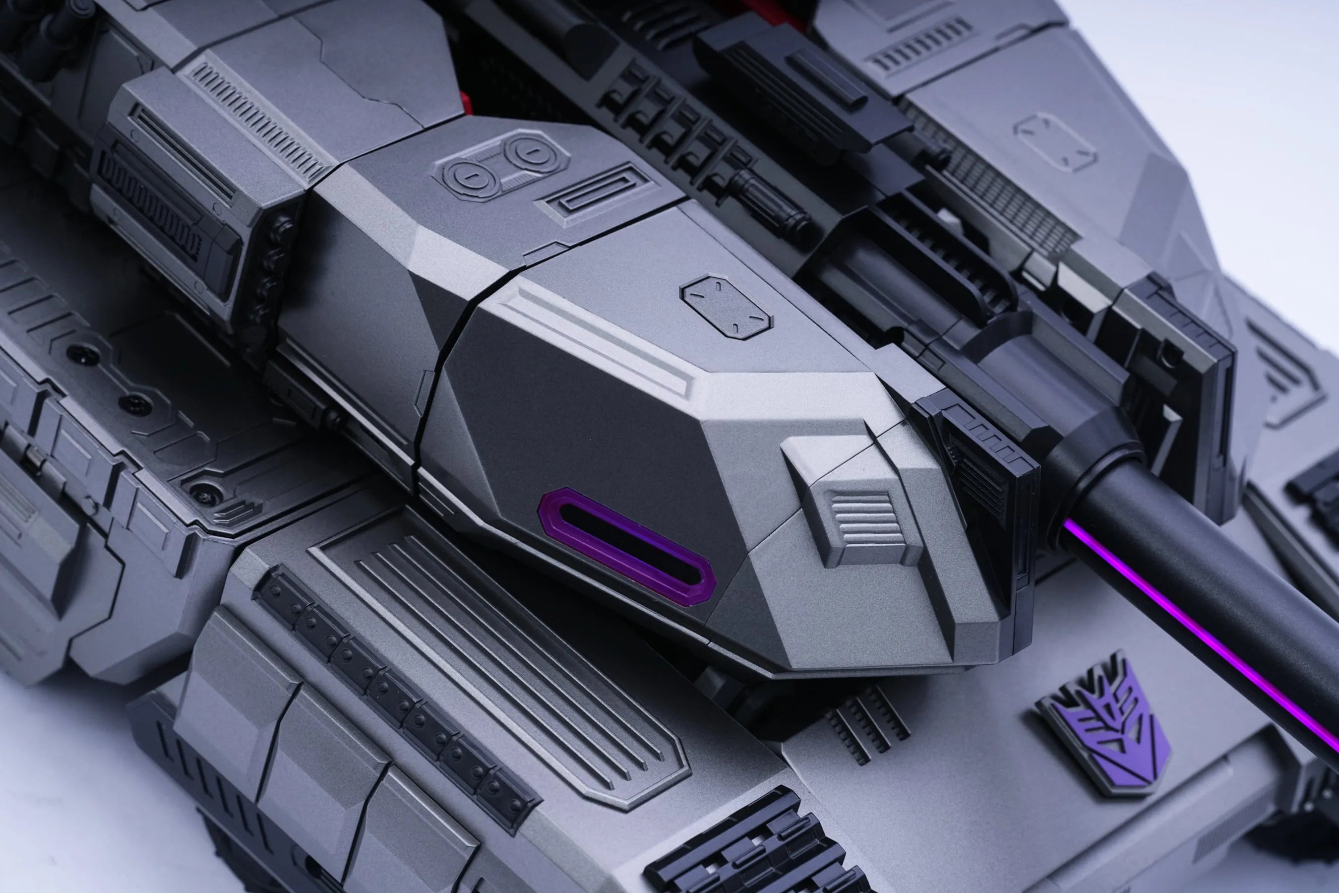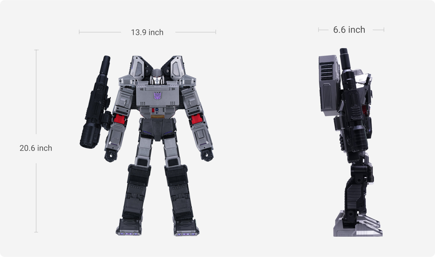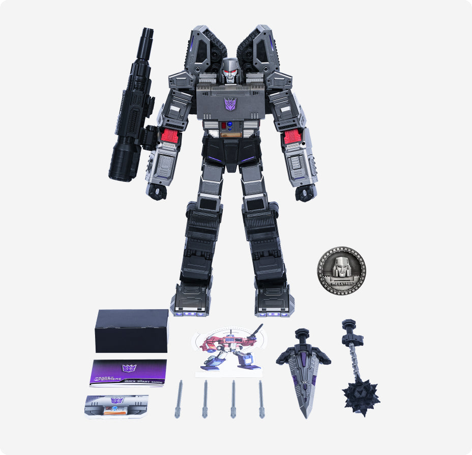 Crafted from a specially designed alloy of a deep silver-gray, reflecting the ruthless character and sinister nature of the Decepticon leader.