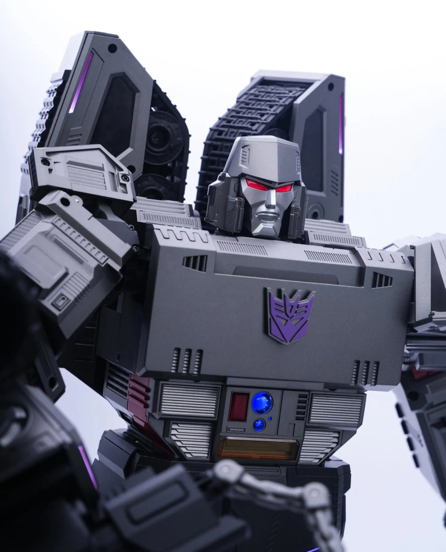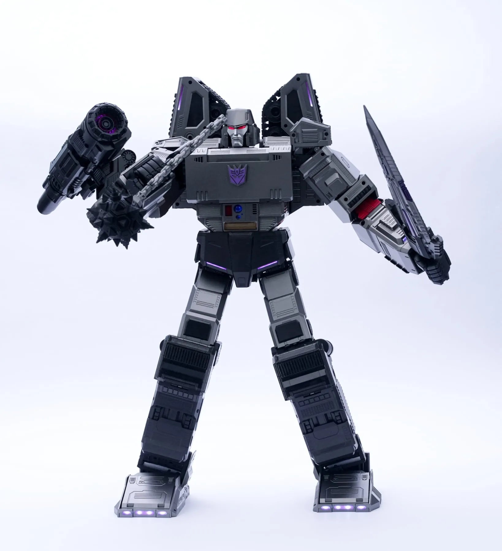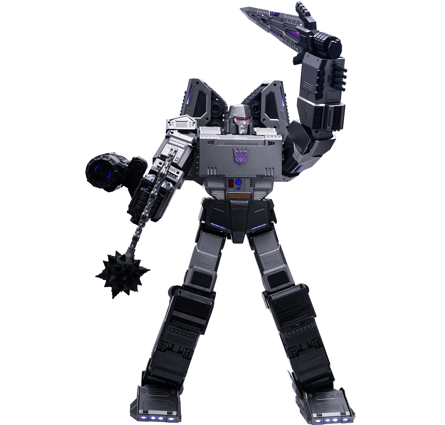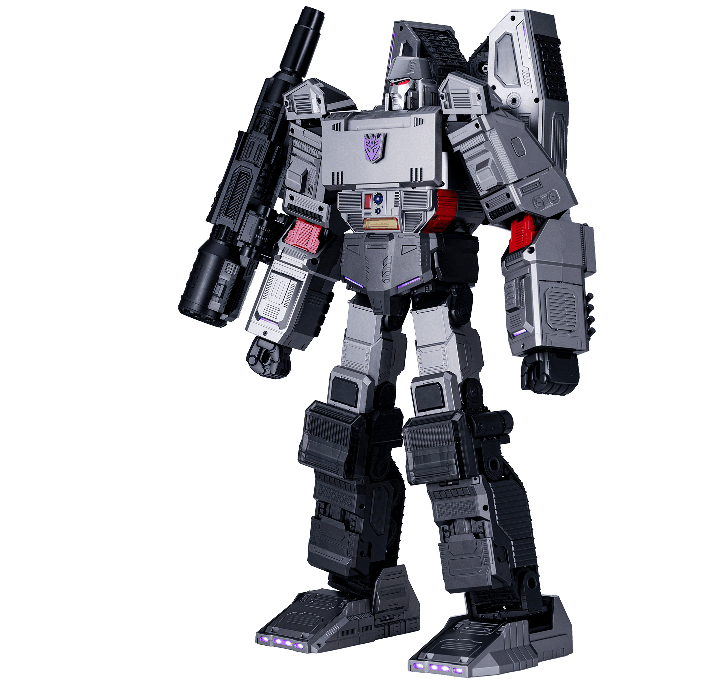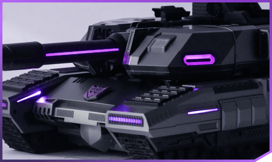 112 ultra-bright LED lights illuminate Megatron with stunning red and violet accents throughout for the most realistic and authentic looking Decepticon leader on the market.
