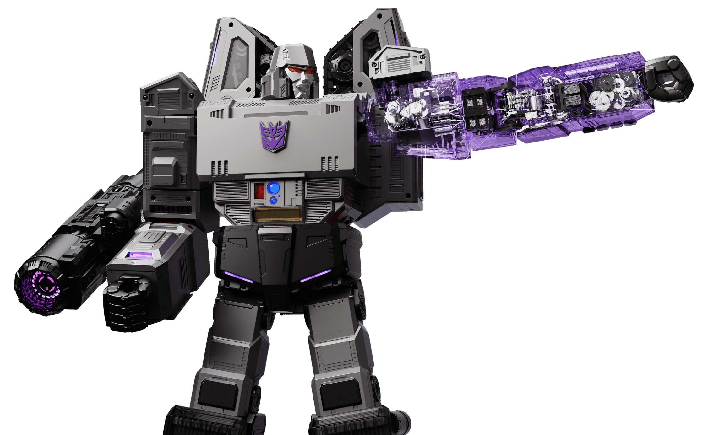 Megatron flexes in any battle with an unrivaled arsenal of weapons for close combat, or to destroy the enemy at a distance.