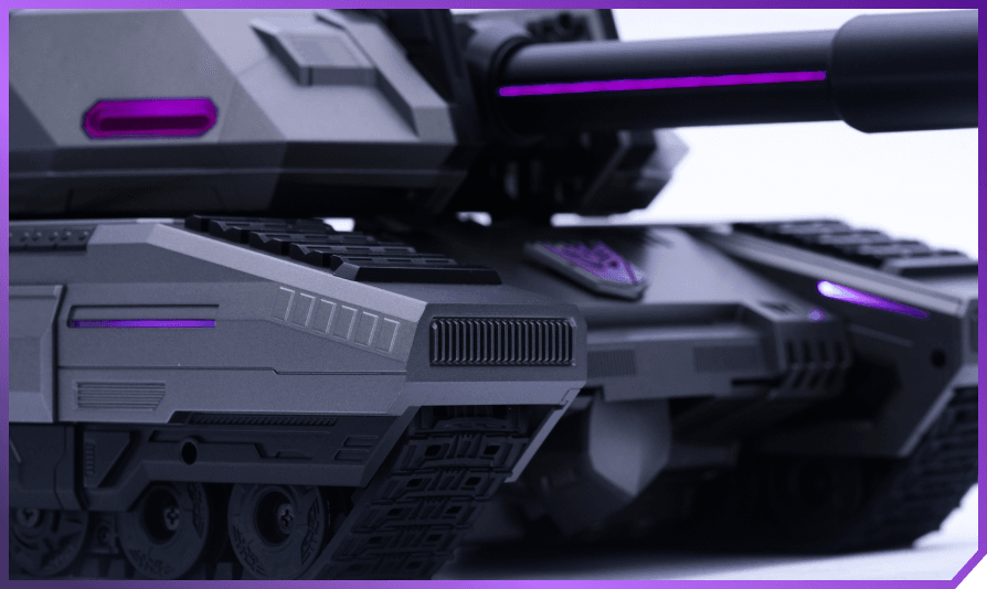 Inspired by real life tank tracks and axle structures, Robosen's Megatron delivers exceptional climbing performance, off-road abilities, and pivot turns all while in Tank mode.