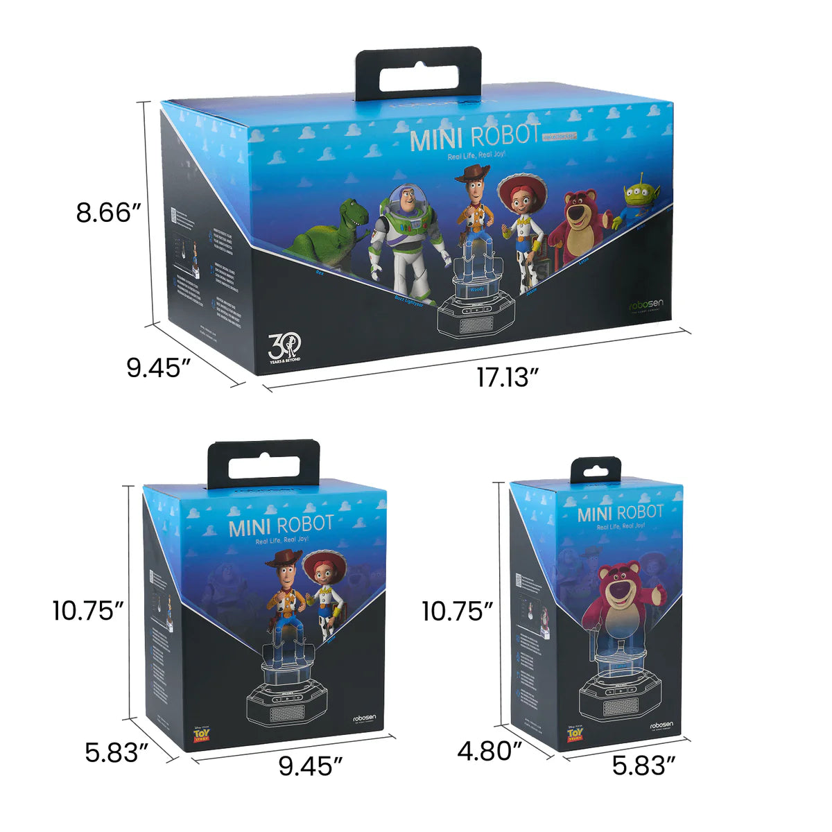 Bring home the magic of Toy Story with this exclusive Mini Robot set. Each figure carries iconic details — Woody’s “Andy” signature, Lotso’s strawberry scent, Jessie’s magnetic hat — small touches that spark big memories. Perfect for kids, families, or anyone who loves Pixar classics.