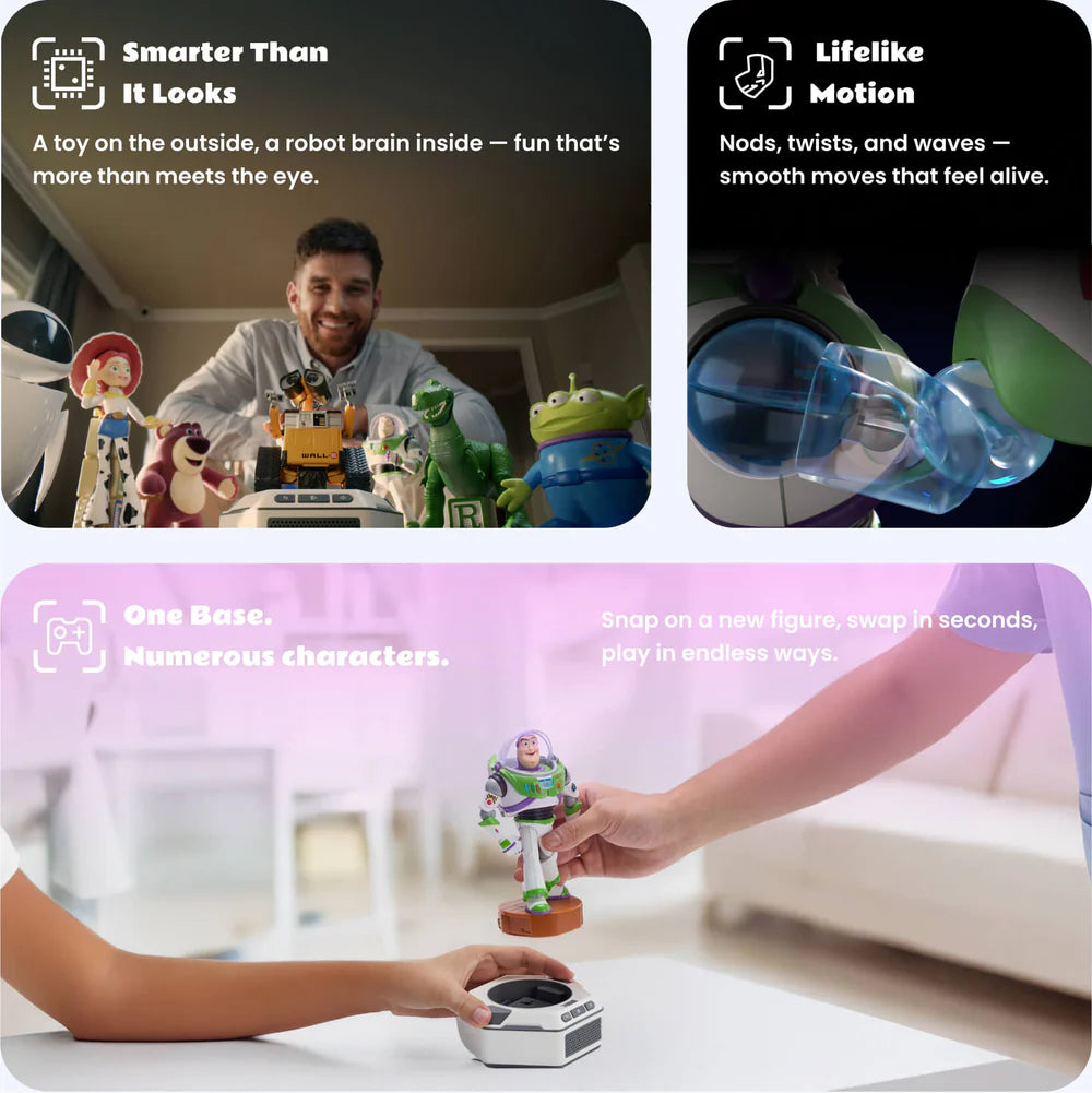 One smart base works with every Mini Robot. Snap on Woody, swap to Buzz, or bring WALL·E to life — changing characters is quick, easy, and always brings something new to play with.